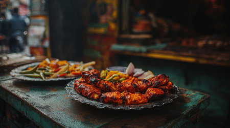 Delicious, Rustic Street Food Presentation in South Asia with vibrant colors.