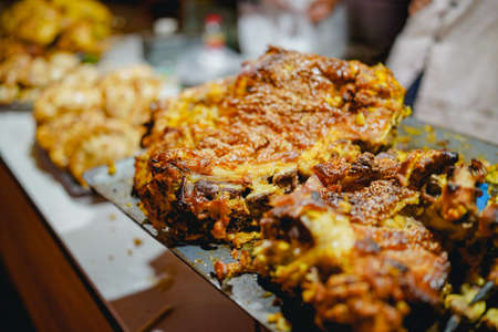 indian pakistani arab famous traditional barbeque dishes on dinner table chicken Tikka Malai boti beef tikka behari boti roast leg of lamb chapli kabab
