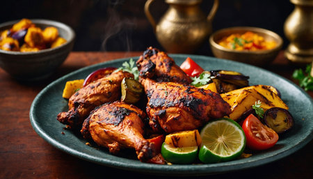 Grilled Chicken Wings with Roasted Chicken on a Plate: Indian Cuisine Generative AI