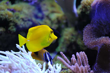Tropical yellow fish swimming in an aquarium