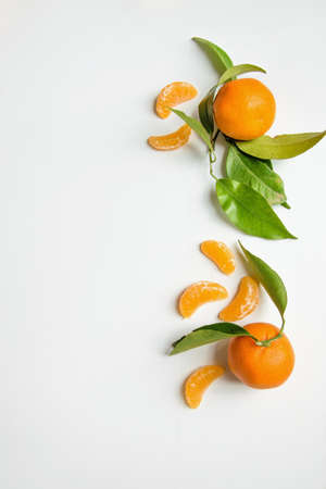 Fresh tangerines on white background with space for text