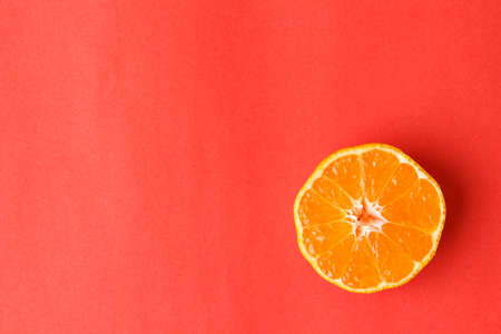 orange fruit peel on red background