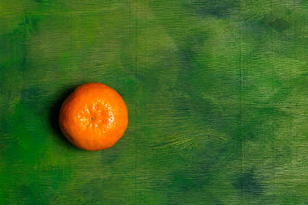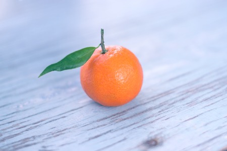 Mandarin with leaves lying on the table