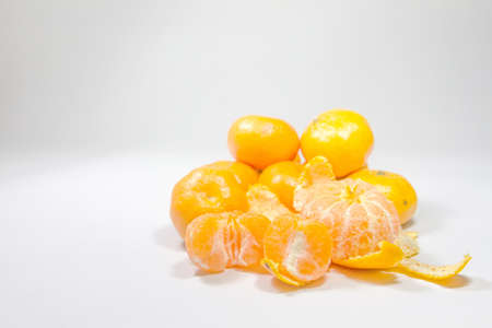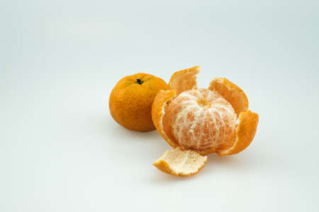 Jeruk Santang Madu (Citrus sinensis) on white background. Free space for text. Often consumed during Chinese New Year.