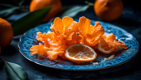 Juicy citrus fruits decorate rustic wooden table for healthy meal generated by artificial intelligence