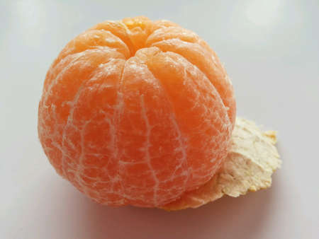 Single mandarin peeled isolated on a white background.