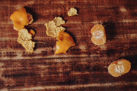 orange fruit peel on table