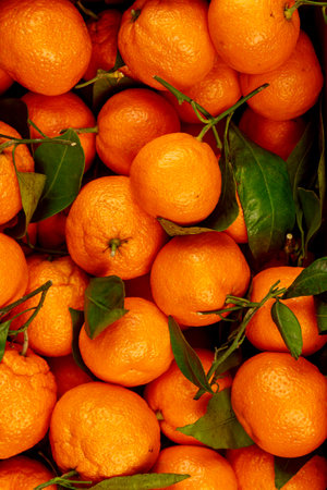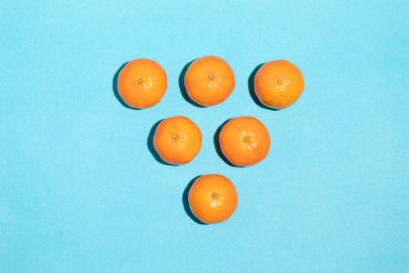 Juicy and natural tangerines forming a triangle shape
