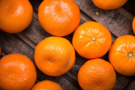 Fresh tangerine orange fruit on vintage color background