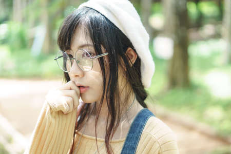 Portrait of charming Asian girl in the park