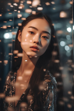Portrait of a beautiful young asian woman in shiny dress.