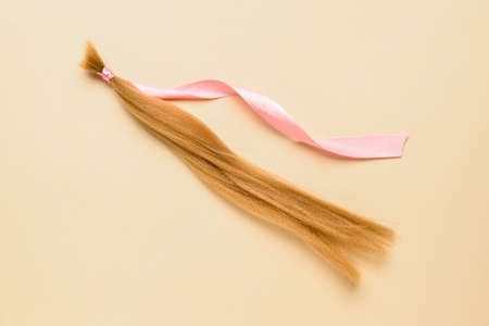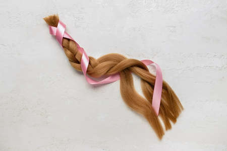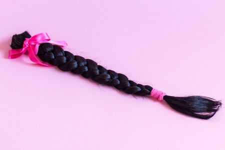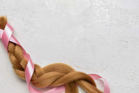 Brown hair braid on pink background for hair donation for women with cancer chemotherapy