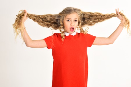 lets have fun. Extra fresh dry shampoo. happy girl with long windy hair. healthy and strong hair. hairdresser beauty salon. Nice and tidy hairstyle. Girl active kid with long gorgeous hair
