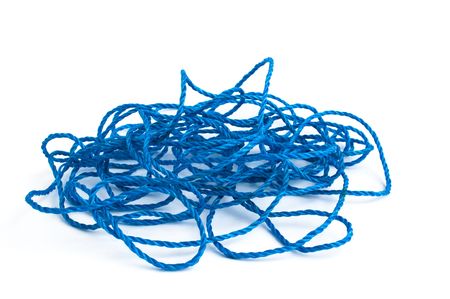 Rolls of rope scattered on the floor, concrete floor background, problems and teamwork concept