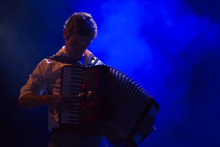 OLHAO, PORTUGAL - 11 AUGUST 2016: Os Azeitonas music group on a Seafood festival.