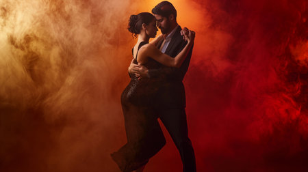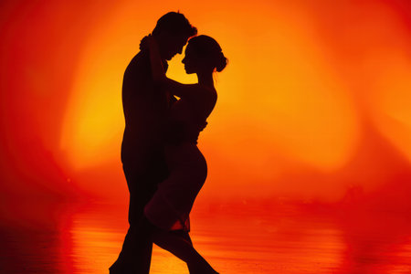 A graceful silhouette of a couple dancing tango, capturing passion and elegance