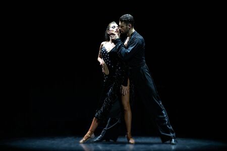 Beautiful passionate dancers dancing tango. Professional dancers. Couple in love dancing on a date. Love concept.