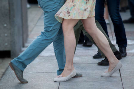 Two adult dancers feet dancing swing music outdoors in the park - unrecognizable people