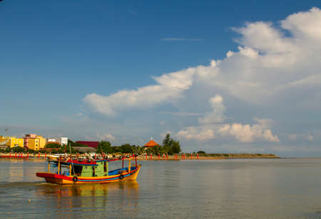 A fisherman boat moving through quiet riverside. Besut, Terengganu.