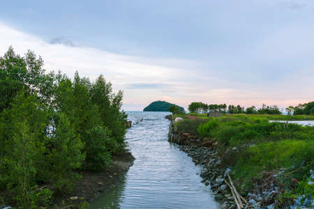 Bukit Mertajam, Penang/Malaysia - Dec 27 2015: Traditional Malays fishing village at Penang in sunset hour. Located beside mangrove tree forest.