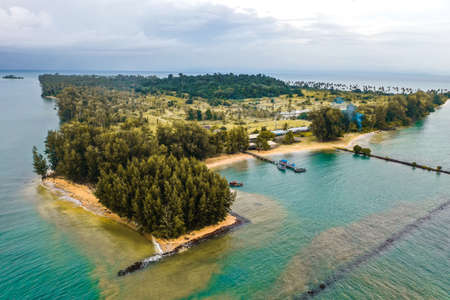 Laem Son National Park Pier in Kapur District, Ranong, Thailand from aerial view by drone.