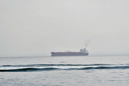 A Crude Oil Tanker Ship, on the shipping channel between the Gulf of Mexico and Corpus Christi, Texas, sails past Port Aransas on a clear sunny evening.