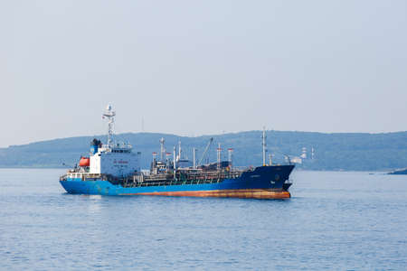 Summer, 2016 - Vladivostok, Russia - A merchant ship stands on the roadstead in the Golden Horn Bay in Vladivostok