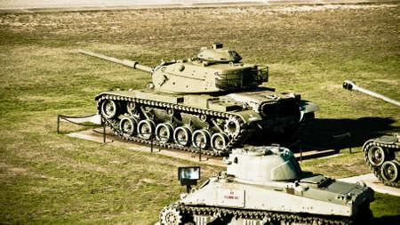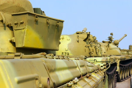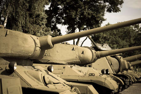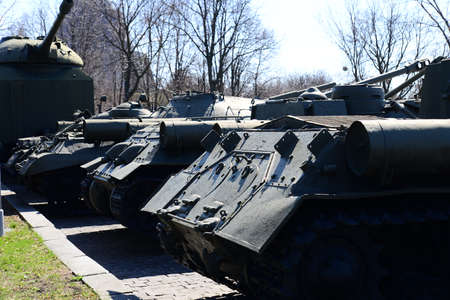 The convoy of military tanks 1940 -1980 years on the museum area of the Second World War in Kiev.