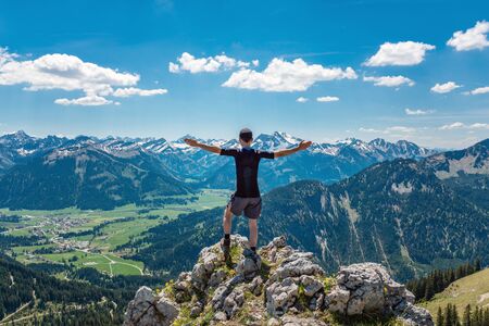 Fantastic hike in the Tannheim Mountains from the summit of Neunerkopfle over Landsberger hut to the beautiful Vilsalpsee.