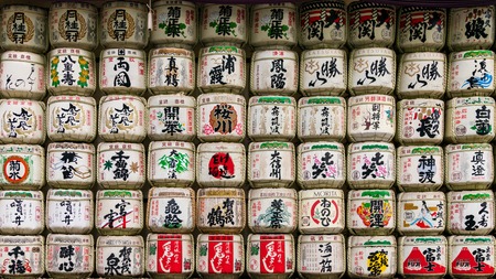 Sake barrels at Meiji Jingu Shrine, Shibuya, Tokyo, Japan