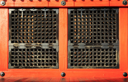 Wooden crossbar with gold rosette, Tokyo, Japan. Close-up