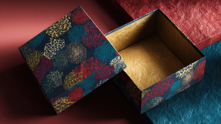 This colorful decorative gift box features intricate patterns and a luxurious empty interior. Perfect for gift-giving or stylish storage solutions, it enhances any decor.