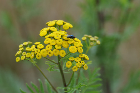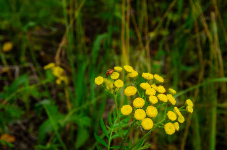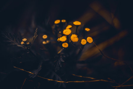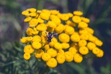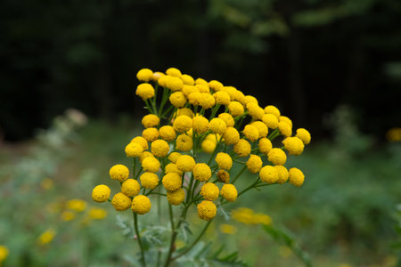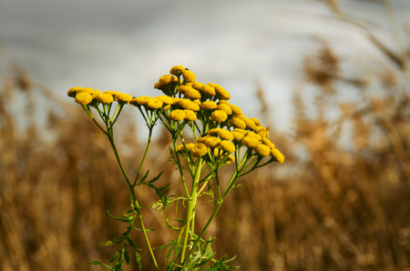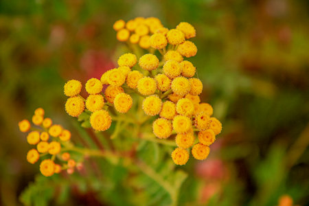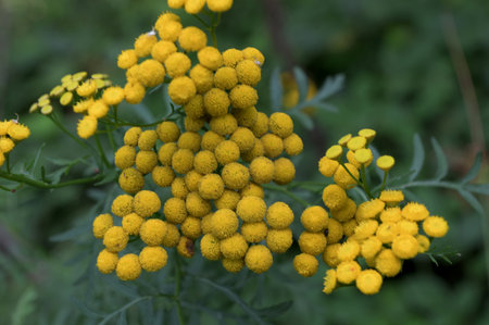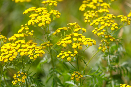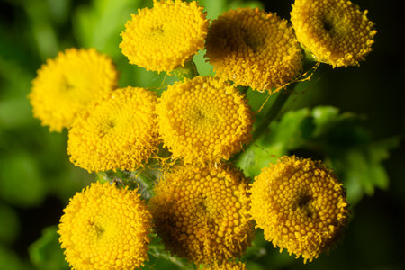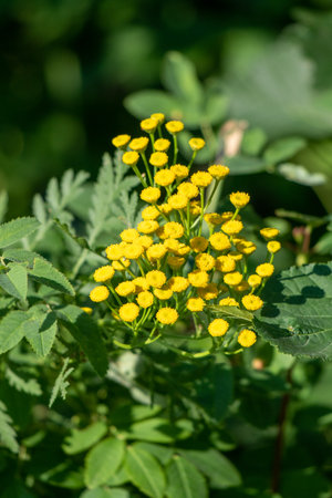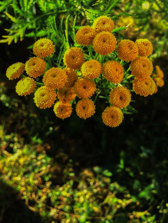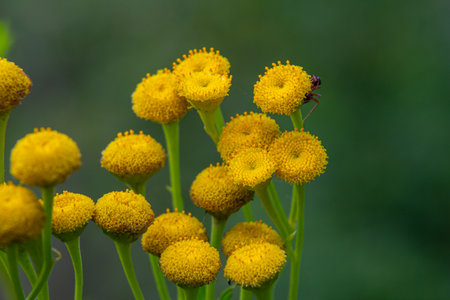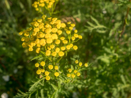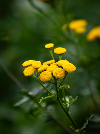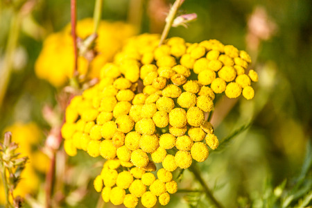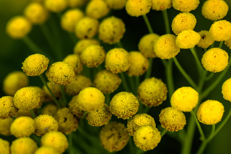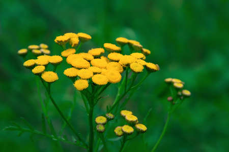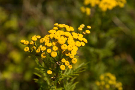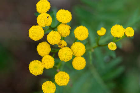 tansy, bitter buttons, cow bitter summer yellow flowers closeup selective focus
