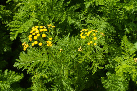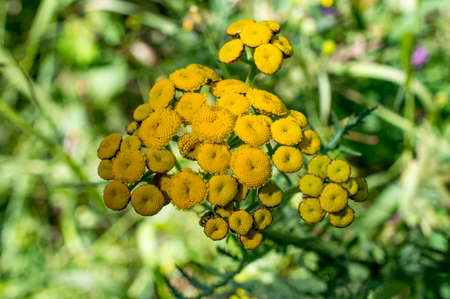 Blooming Tansy (Tanacetum vulgare) flowers on a meadow during summer