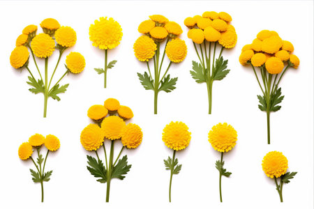 Blooming Beauty: Delicate Common Tansy Flowers for Collage, Design, and Celebratory Invitations