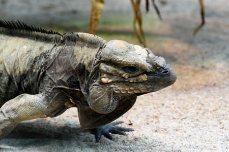 Vertical close up of a marine iguana on a rock in the Galapagos Islands