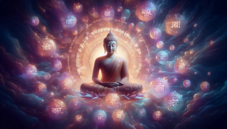 Buddha with mantras, Ai generated image