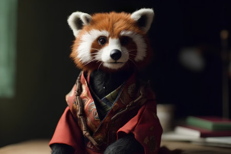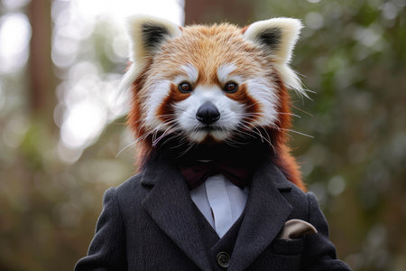 Distinctive Anthropomorphic red panda dressed suit. Cute face art wear cool. Generate Ai