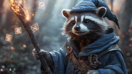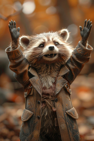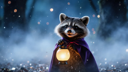 A cinematic Halloween background. This whimsical raccoon is a premium visual for holiday campaigns and decor.