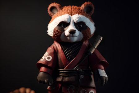 Kokeshi doll with panda bear and katana on black background