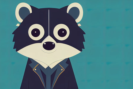Cartoon character in the form of a happy raccoon in nature.