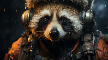 Fantasy portrait of a raccoon in a hat and scarf.