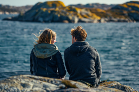 man and woman sitting on rock near sea during daytime