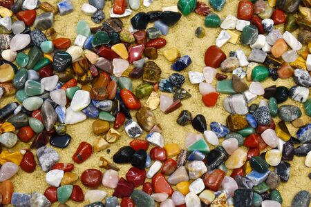 Full frame of colorful gemstones texture. Natural mineral stones close up