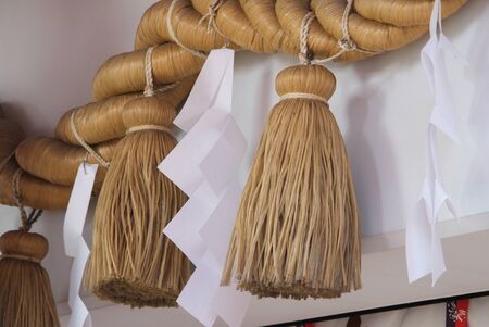 Tokyo,Japan - October 25, 2021: Shimenawa and Shide at Shinto Shrine in Japan