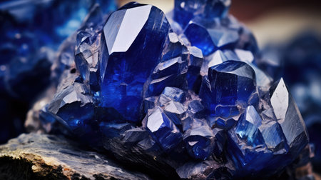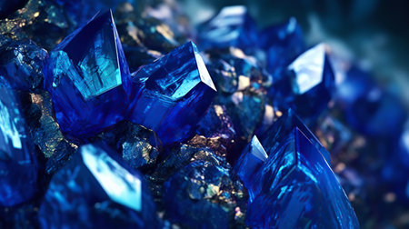 Amazing bright and shiny Sapphire crystal cluster background. Jewel mineral detailed macro. Generative AI.