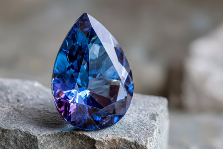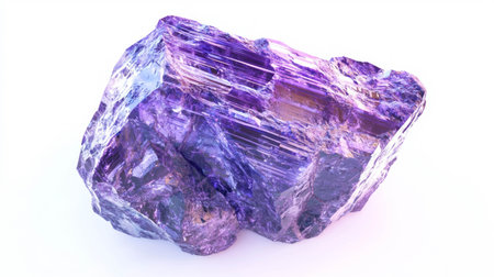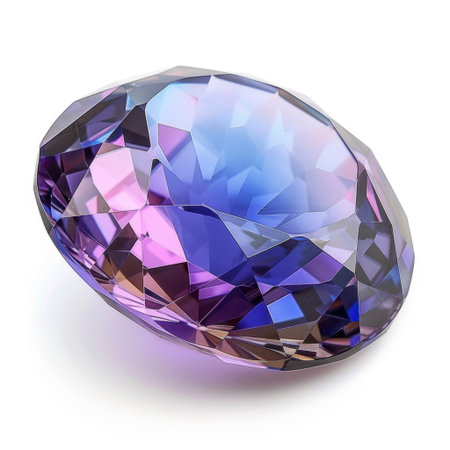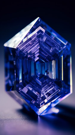 A striking large cut gemstone showcasing deep purple and blue hues. The brilliant facets reflect light, creating a mesmerizing visual perfect for luxury decor.