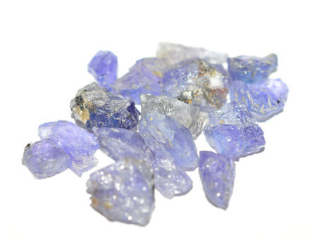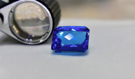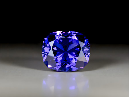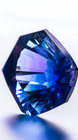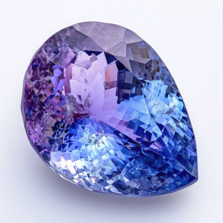 Tanzanite flaunting its exquisite indigo and violet sparkles, on a pristine white surface.