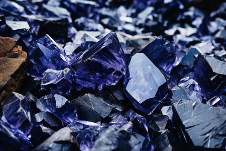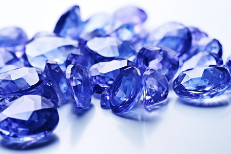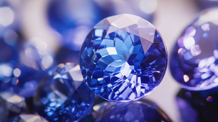 A beautiful close-up of sparkling blue gemstones, highlighting their intricate facets and reflections in soft light, perfect for projects requiring elegance and luxury.