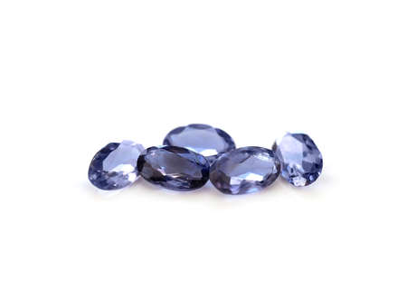 Tanzanite is a rare precious natural geological stone on a white background in low key. Fashionable jewelry elegant decoration. AI generated. Header banner mockup with space.